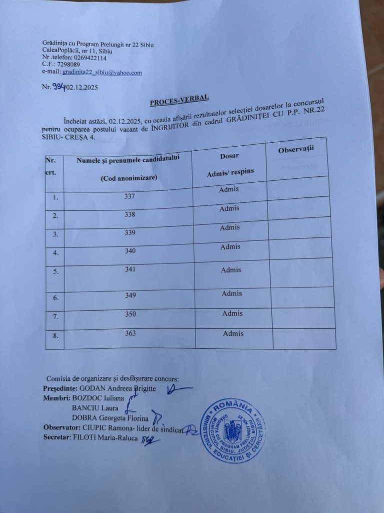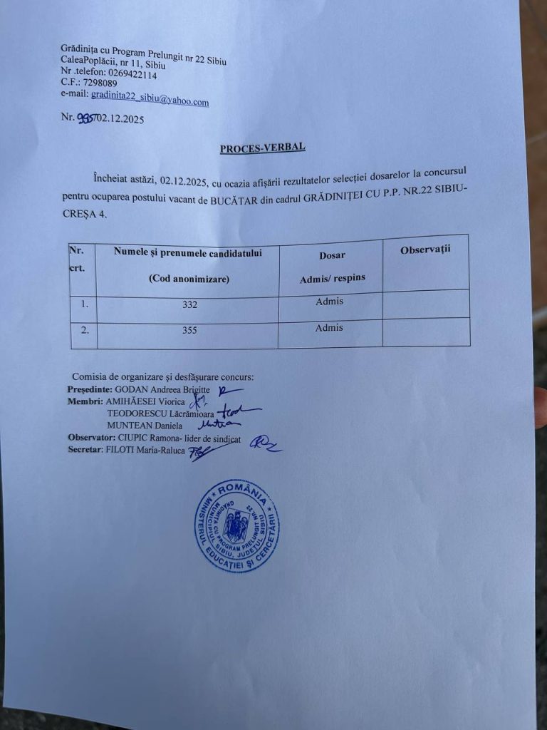 Anunt concurs ocupare loc de munca ingrijitor si bucatar