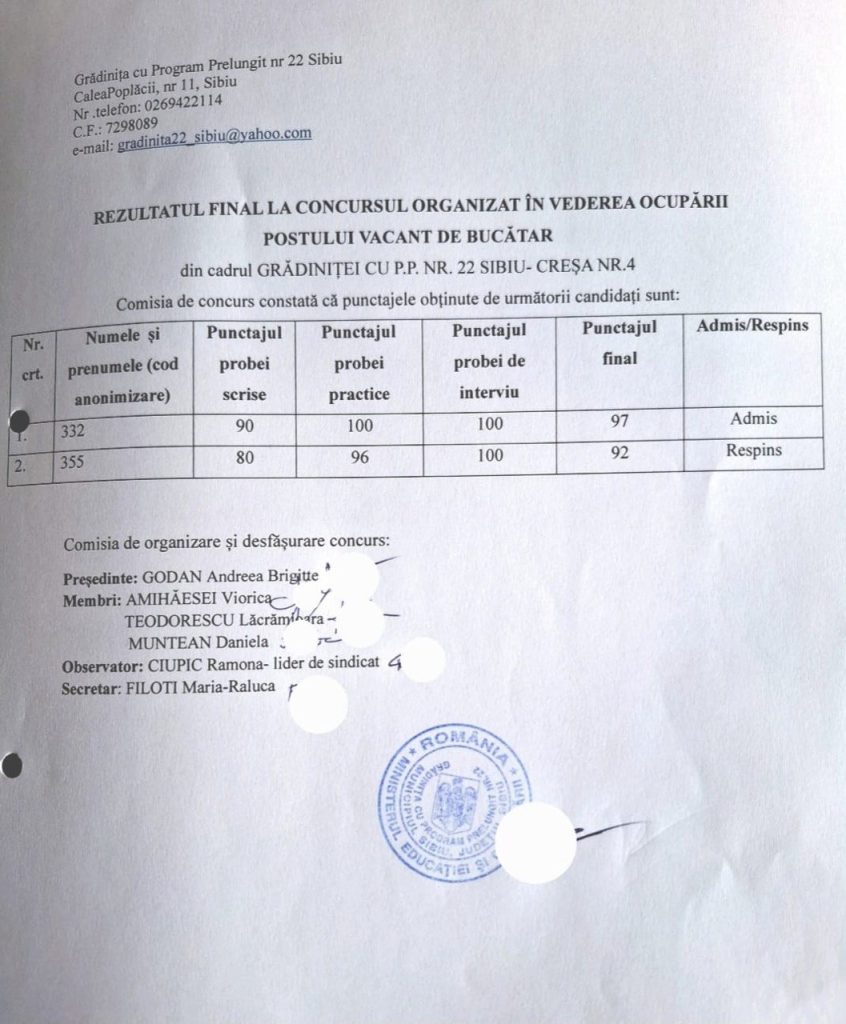 Rezultat final post bucatar
